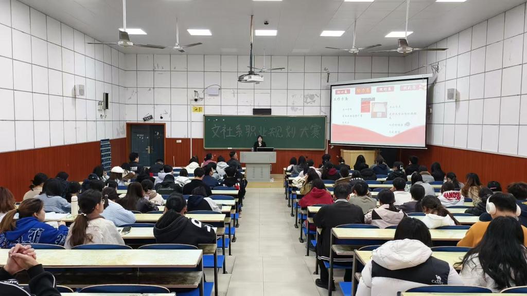 通讯员:刘欣怡)为引导学生树立科学职业观,明确职业发展方向,提升职业规划能力与就业核心竞争力,11月25日中午,芙蓉学院文学与社会科学系北校区T3D102教室隆重举办2025年职业生涯规划比赛。党总支书记佘飞鸿、学工办主任秦彩凤和系主席团成员受邀担任评委,20名来自不同专业班级的参赛选手同台竞技,各班主要班委等100名同学现场观赛。